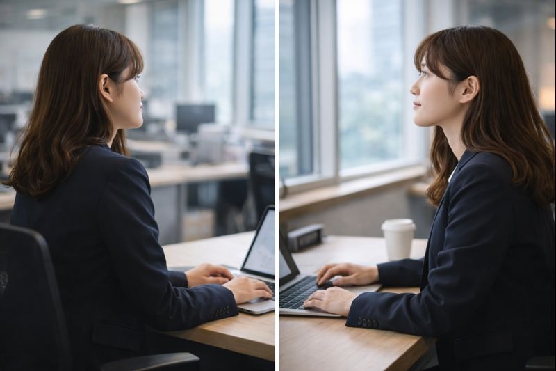 1時間に1回、立ち上がって窓の外を眺めるだけ。視線を遠くにすることで、首・肩の力が抜けやすくなります。